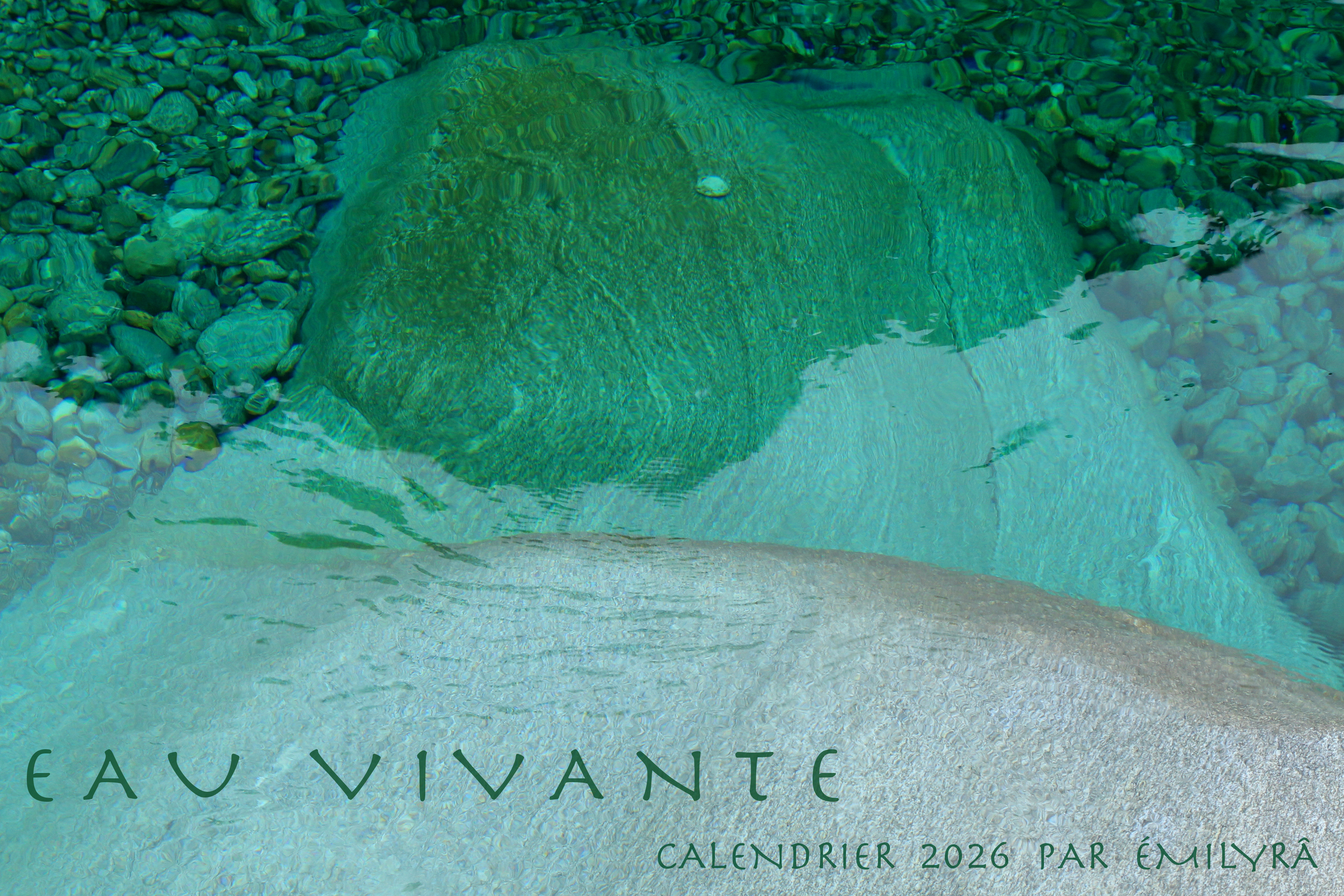 Eau Vivante est un hommage à notre source de Vie, ses différents mouvements, sa fluidité, sa puissance, ses lumières, ses esprits et habitants. Des moments et rencontres vécus auprès de rivières, torrents, lacs, mer, flaque ou fontaine entre Suisse, France, Espagne et Maroc, cueillis et présentés de façon intimiste.