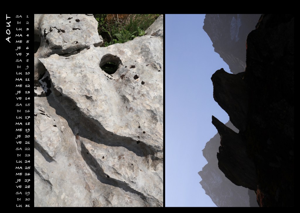 Esprits Gardiens présente des esprits de la nature gardiens de lieux dans les Alpes et préalpes suisses, l’Atlas et le Sahara marocains, le nord de l’Espagne. Des êtres, animaux, visages, présences, qui sont des manifestations des énergies du lieu que nous pouvons rencontrer lorsque nous sommes dans un état de présence profonde. Je sublime ces rencontres par la photographie, afin de diffuser leurs énergies. Celles-ci vous accompagneront tout au long de l’année 2026 !