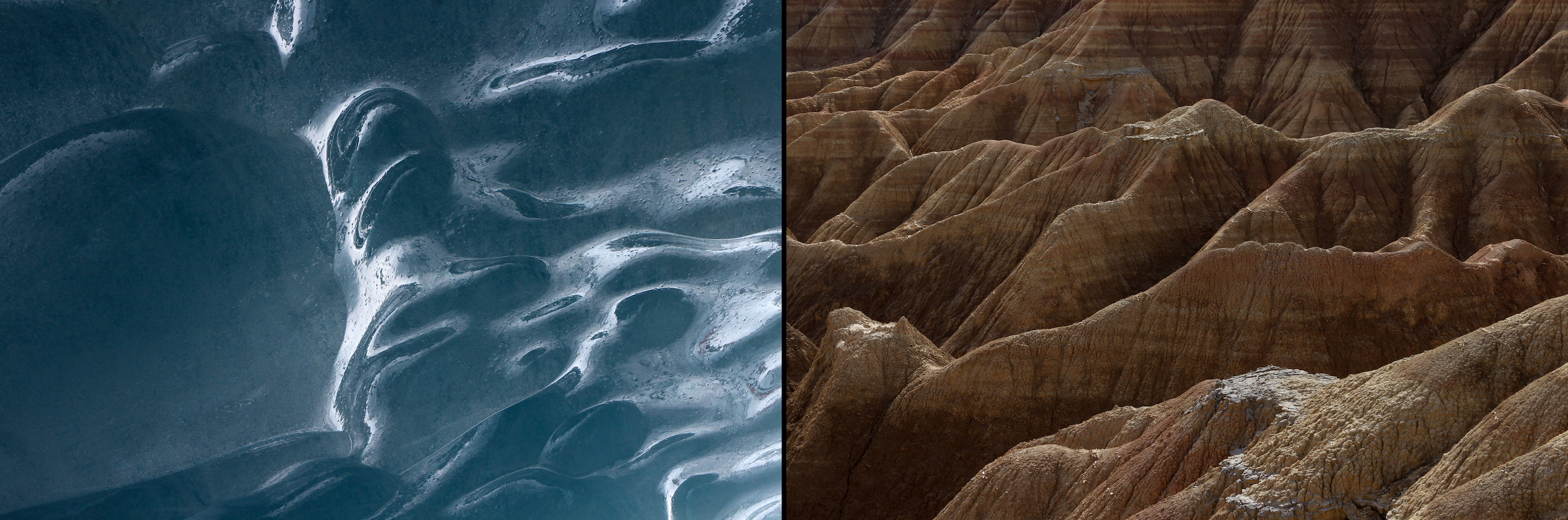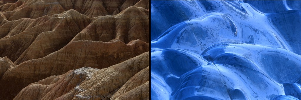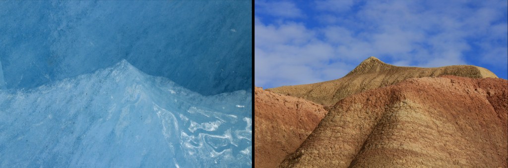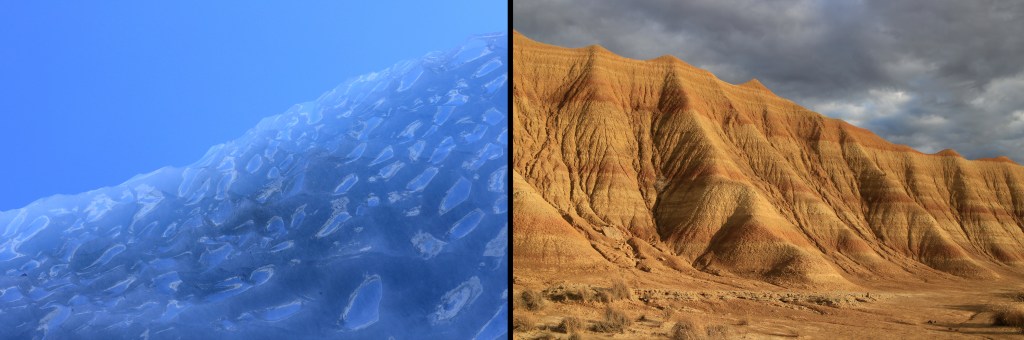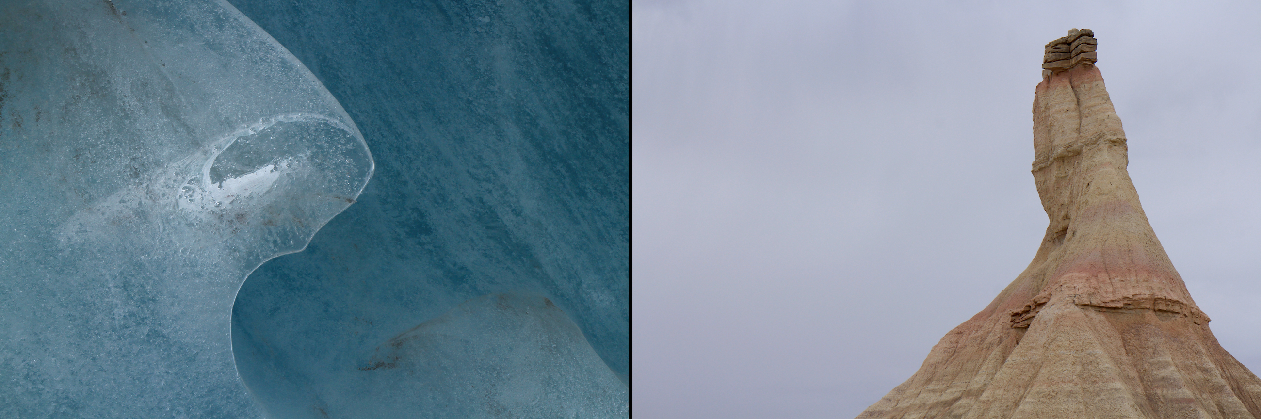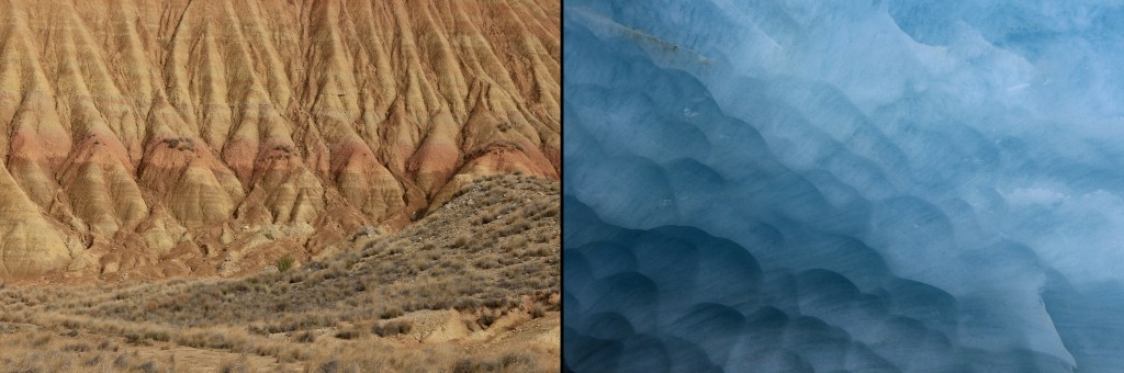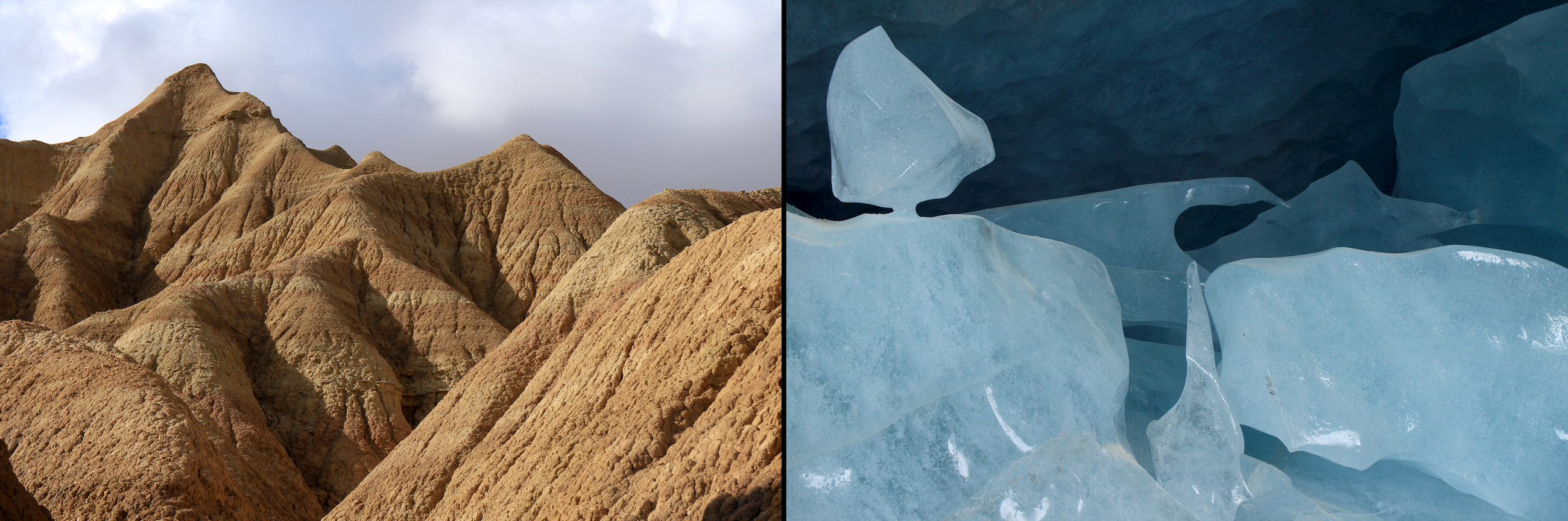 Entre le désert de Bardenas Reales (Espagne) et la grotte du glacier de Zinal (Suisse)